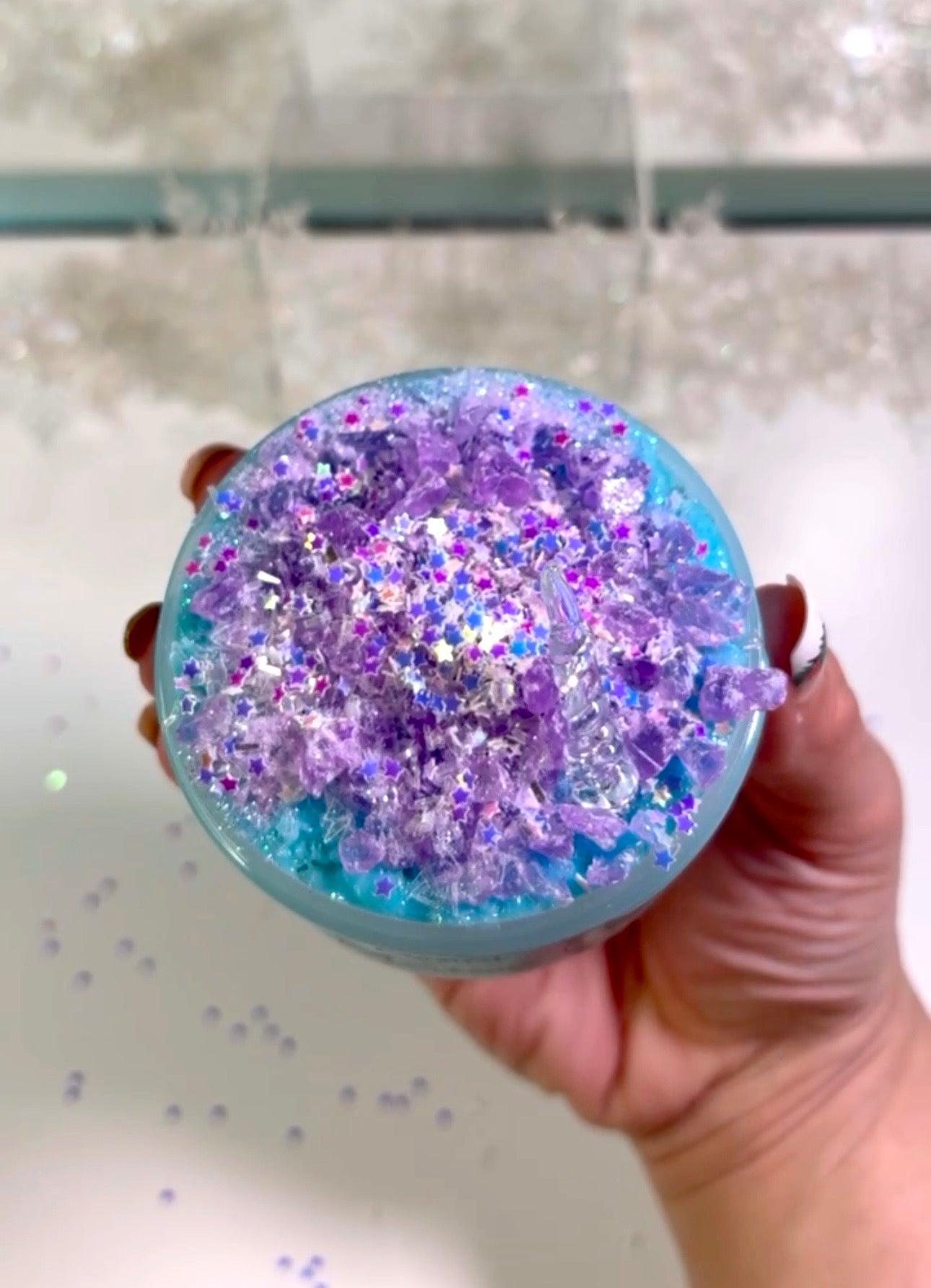 TOPPERS: silica, glitter and an icicle charm